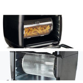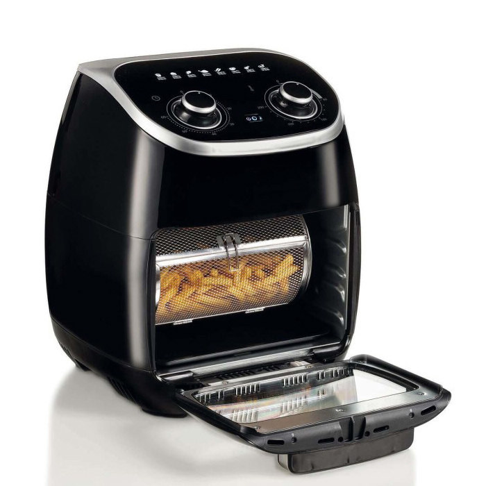 قابلیت سرخ کردن ، گریل ، کباب ، توست ، گرم کردن ، بریان ، پخت کیک ، نان ، پیتزا ، شرینی و ...... دارای درب شیشه ای دارای زنگ آماده به کار مجهز به تایمر ۶۰ دقیقه ای دارای قابلیت پخت بدون روغن با کاهش ۸۰ درصد چربی غذا دارای محفظه جمع آوری سیم پخت بوسیله چرخش هوای گرم امکان تنظیم دما و زمان برای پخت غذا بوی کمتر در حین پخت در مقایسه با سرخ کن های معمولی میتوان برای طلایی شدن رنگ مواد غذایی بخصوص مرغ و سیب زمینی از یک قاشق روغن استفاده کرد. دارای سینی چکه گیر و سینی توری برای پخت و توست کردن و سبد جوجه گردان میباشد.