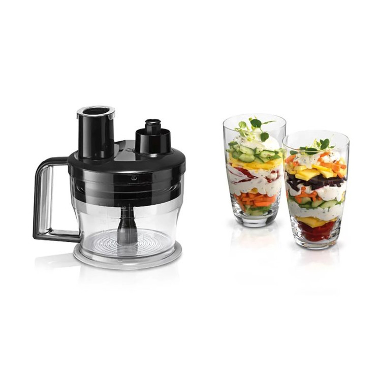 خردکن بزرگ با گنجایش ۱.۲۵ لیتر خرد کن کوچک با گنجایش ۰.۵ لیتر دارای ۴ رنده ریز و درشت و چیپسی نازک و ضخیم تیغه یخ خرد کن پره همزن نرم و سفت لیوان مندرج دارای دو درب پوش جهت لیوان و خردکن کوچک