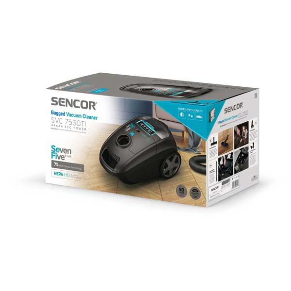 برند سنکور|SENCOR مدل SVC 7550TI توان 750 وات نوع جارو برقی کیسه دار ظرفیت کیسه 3.5 لیتر سطح صدا 75 دسی بل جنس لوله فلزی نوع لوله تلسکوپی فیلتر بهداشتی دارد نوع فیلتر HEPA H13 طول کابل 7 متر شعاع عملکرد 10 متر قابلیت تنظیم قدرت دارد نشانگر پر شدن کیسه دارد ابعاد 26*29*47 سانتی متر رنگ خاکستری