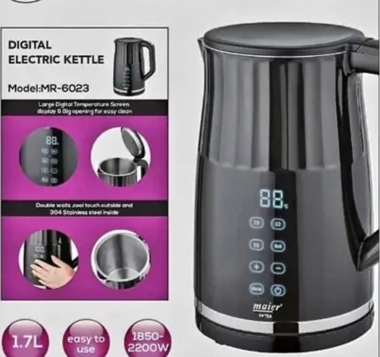 کتری برقی دیجیتال مایر لمسی دوجداره با جنس داخلی استیل 304 دارای گرم نگهدار . 2 ساعت گرم نگهدار وتنظیم 13 سطح برای نیاز های مختلف.
