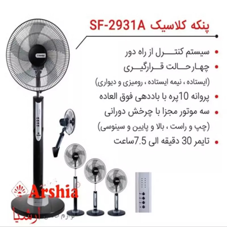 پنکه چهار کاره ارشیا ARSHIAمدل ۲۹۳۱