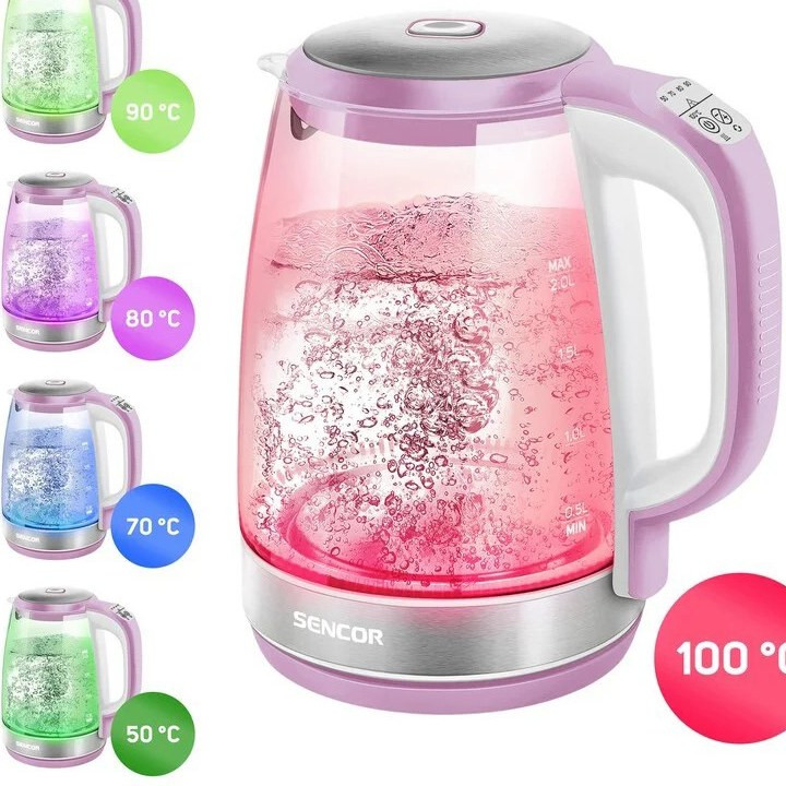 - چراغ LED داخلی با نور پس زمینه رنگی متغیر که نشان می دهد, - وقتی دما روی 50 درجه سانتیگراد تنظیم شود سبز می شود, - زمانی که دما روی 70 درجه سانتیگراد تنظیم شده باشد آبی است, - هنگامی که دما روی 80 درجه سانتیگراد تنظیم شود بنفش می شود, - هنگامی که دما روی 90 درجه سانتیگراد تنظیم شده است، نارنجی شود