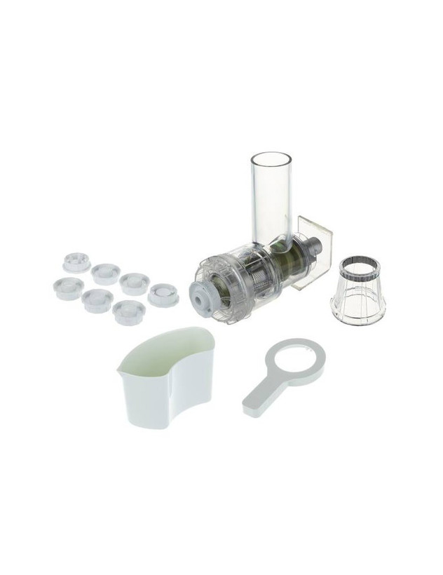 مشاهده محصولات مرتبطموارد استفاده: آب گیری میوه های مختلف از قبیل لیمو ترش، انار، هویج، سیب، گلابی، کیوی، انگور، غوره و میوه های مشابه، خرد کردن انواع دانه های روغنی مانند گردو، قابلیت تهیه انواع پوره از سیب زمینی، شلغم، سویا، بادمجان و انواع حبوبات پخته شده به صورت مجزا، قابلیت خرد کردن پیاز و سیب زمینی خام به صورت مجزا یا مخلوط، قابلیت خرد و مخلوط نمودن انواع غلات و حبوبات پخته، امکان ایجاد نمودن فرم های مختلف ماکارونی و رشته - قابلیت نصب بر روی بدنه چرخ گوشت های شرکت پارس خزر مدلهای: ۱۶۰۰، ۱۵۰۰، ۱۴۰۰، ۱۲۰۰ - فیلتر جدا کننده آب میوه، خردکن و مخلوط کن، دارای ظرف جمع آوری آب میوه، دارای گواهی استاندارد ایمنی محصول